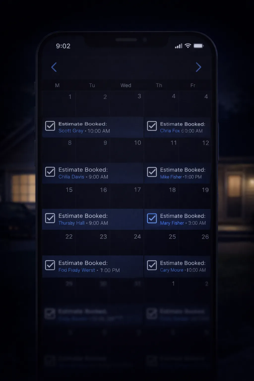 Booked Estimates: – Qualified requests are organized and scheduled so you can focus on the work, not the phone.